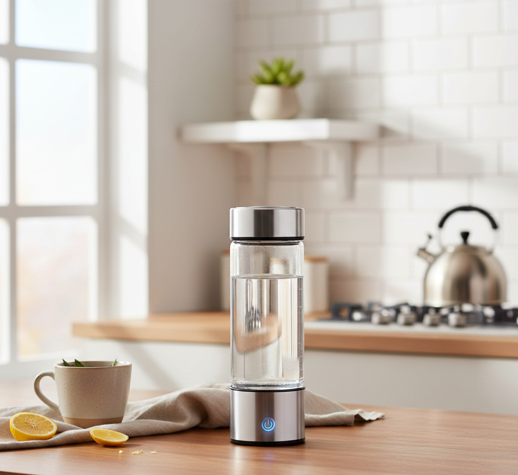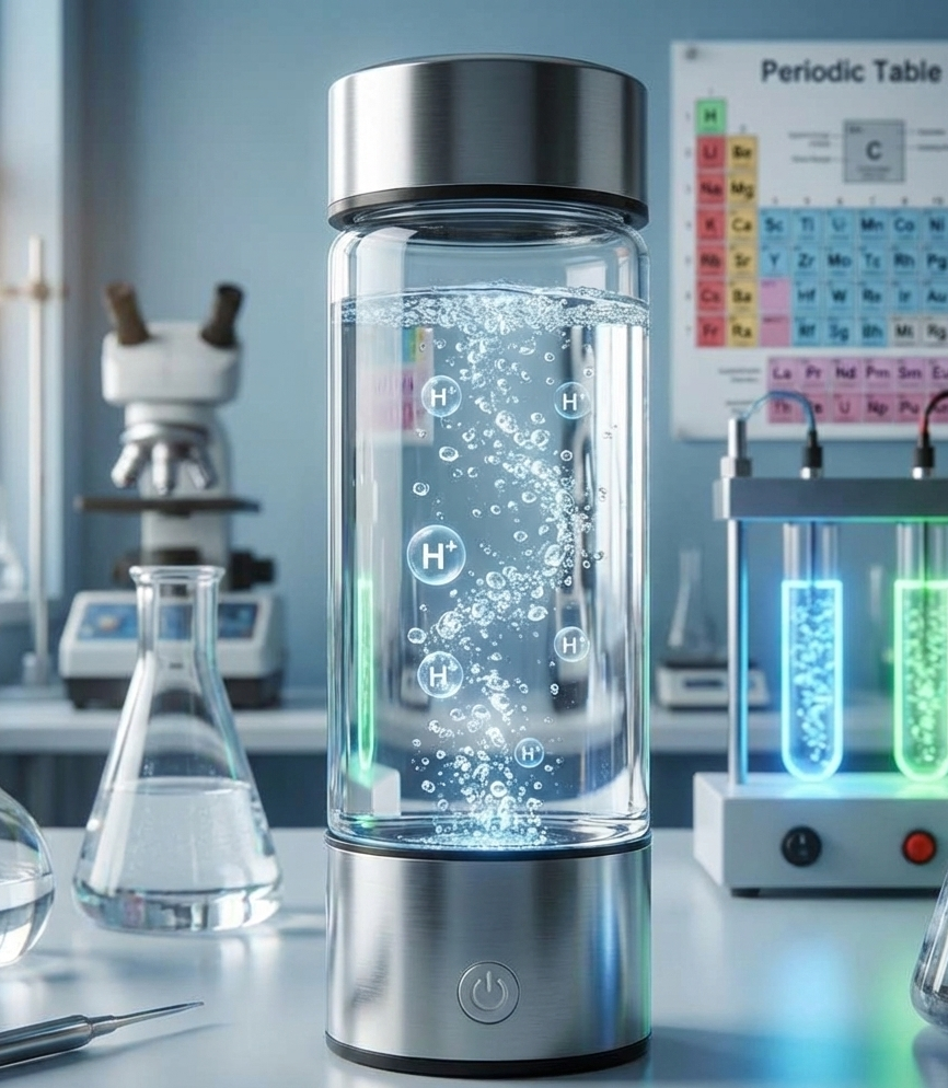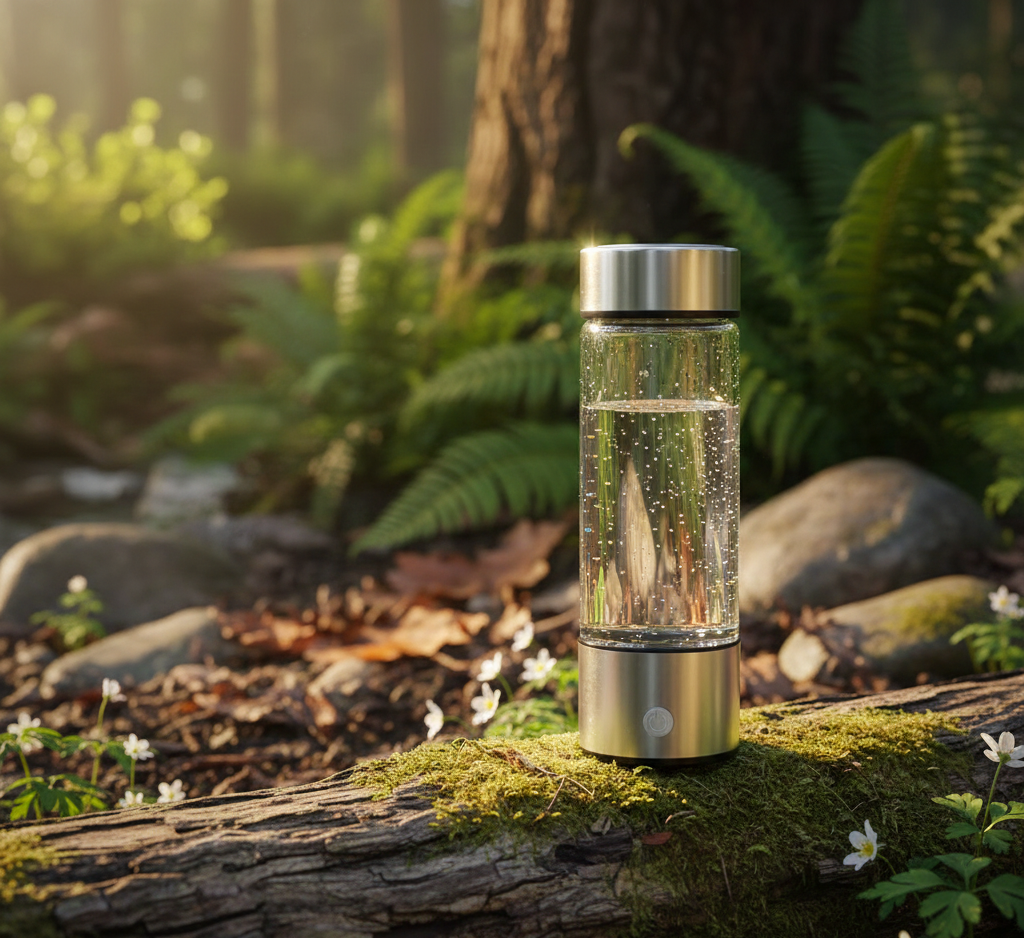 With one press, electrolysis infuses molecular hydrogen into water, creating antioxidant-rich hydration without altering taste.
